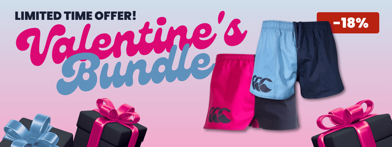 Roses are red. Violets are blue. Matching Harlequin Shorts? It'd be rude not to! This limited time offer includes our bestselling power duo: Cronulla/Navy and Pink/Navy Harlequin Shorts from Canterbury of New Zealand at a special bundle price of £69.99.